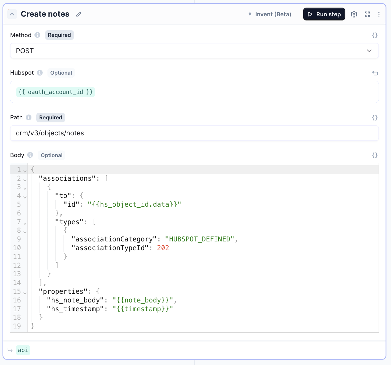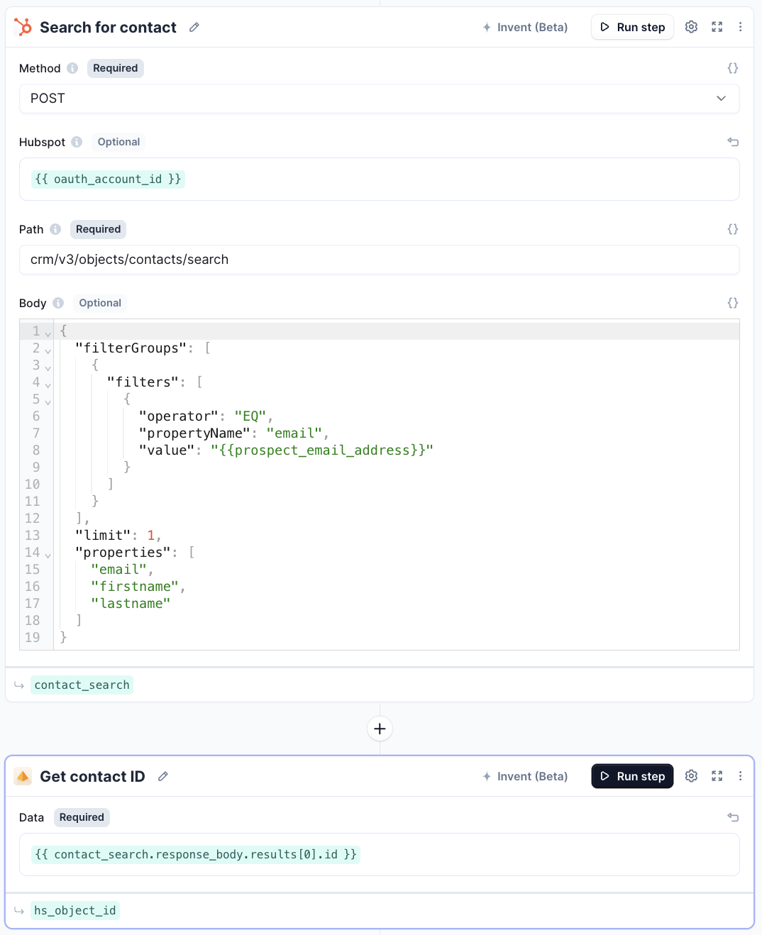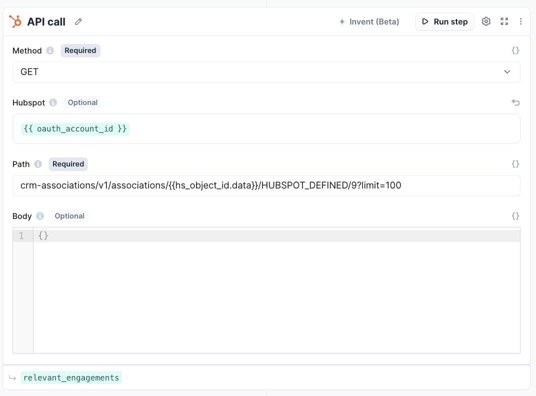 - Add HubSpot API tool-step.